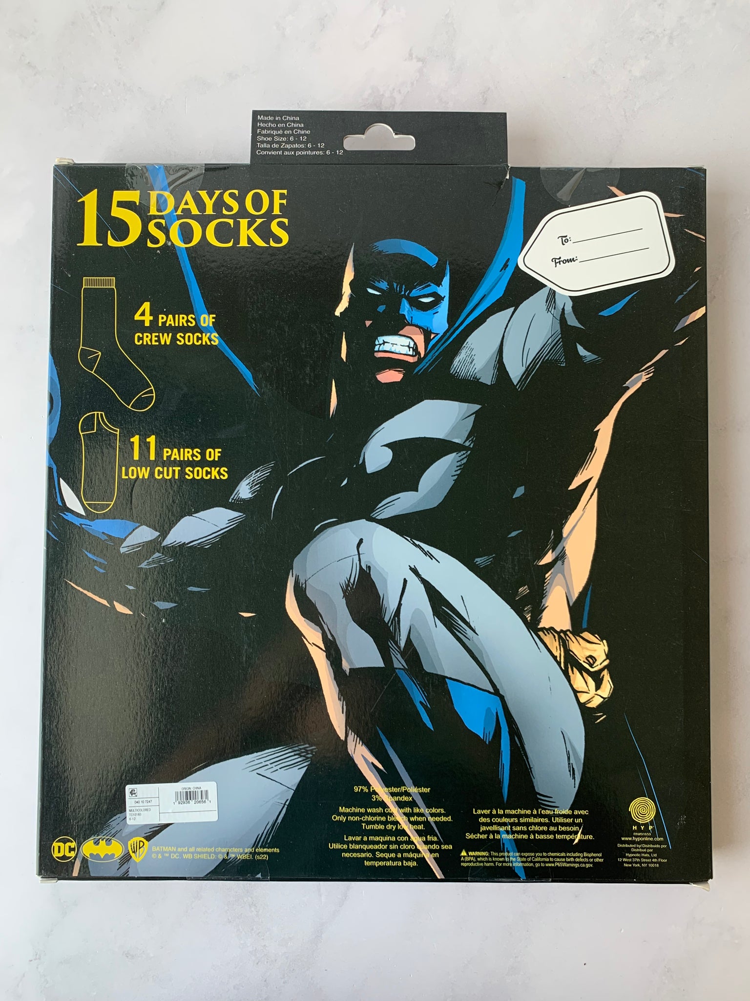 Mejora tu colección de calcetines con un estilo divertido con el Calendario de Adviento de 15 días de calcetines de DC. Este juego de calcetines de regalo viene con 15 pares (11 calcetines de corte bajo y cuatro calcetines de equipo) para cada día antes de Navidad, y le encantará usarlos incluso después de que termine la temporada navideña. Cada par de calcetines presenta un motivo diferente.