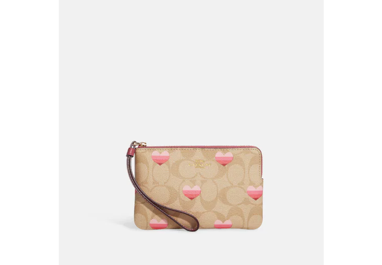 Lona revestida de la firma y piel lisa Dos ranuras para tarjetas de crédito Cierre con cremallera, forro de tela Correa de muñeca adjunta 6 1/4" (largo) x 4" (alto) x 1/2" (ancho)