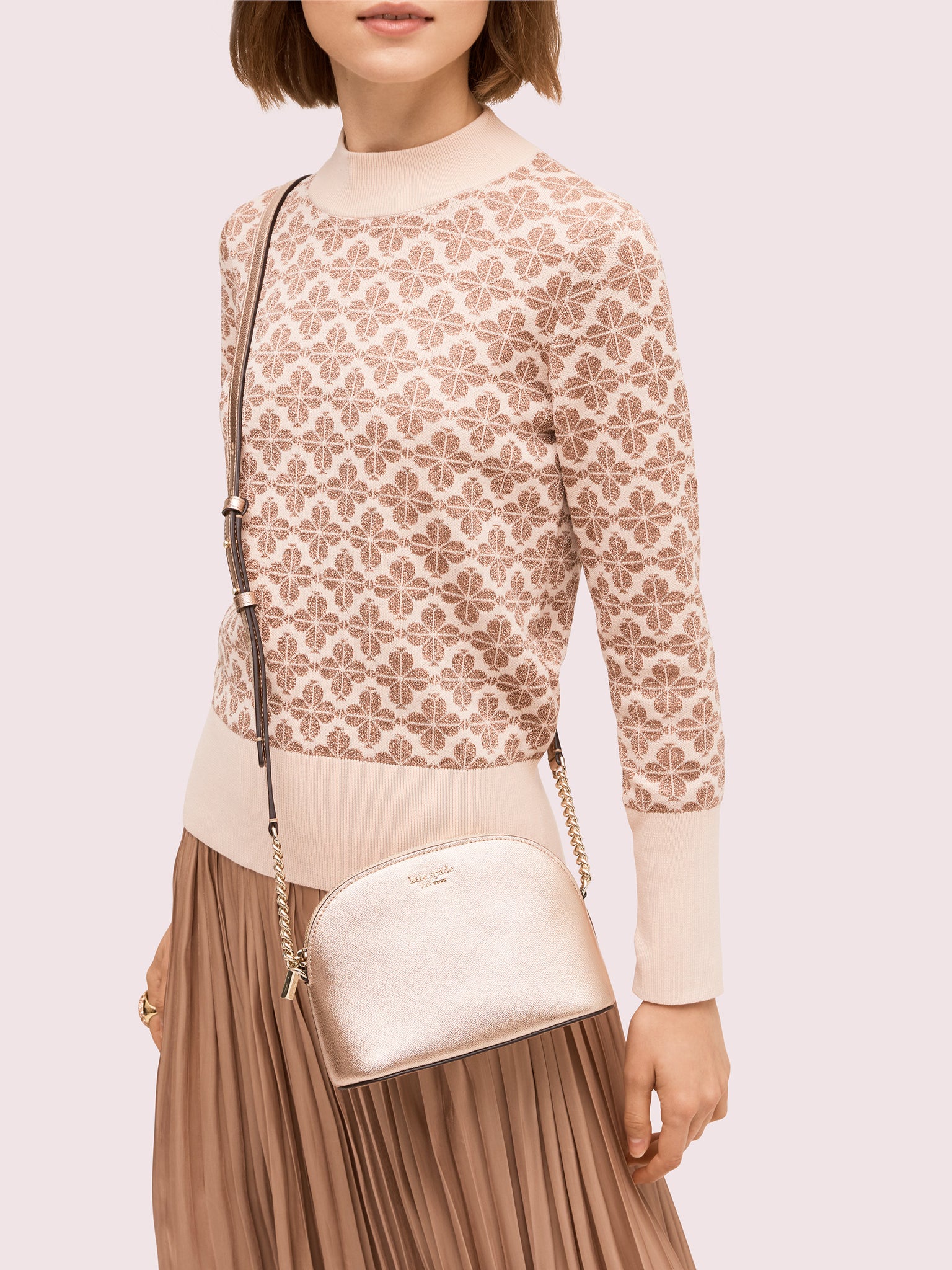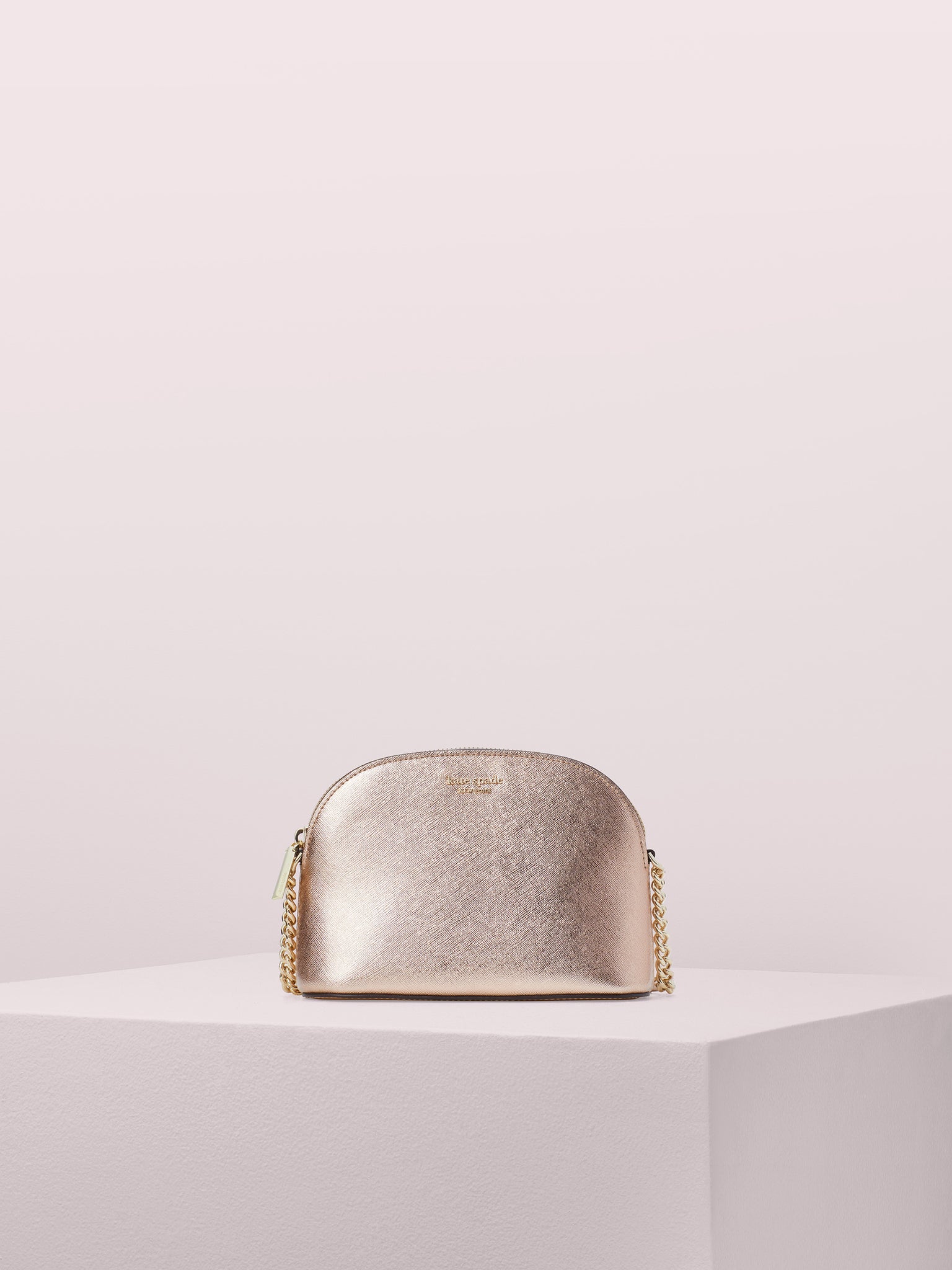 Nuestra bandolera pequeña de cúpula Spencer está confeccionada en nuestra nueva piel saffiano. Su textura suave es agradable al tacto y duradera contra caídas y arañazos, por lo que mantendrá su aspecto elegante y lujoso. Por supuesto, hicimos este modelo pequeño tan funcional como hermoso: abrirlo revela que el interior forrado de jacquard de flores de espada está lleno de mucho espacio y bolsillos para su billetera, llaves, teléfono, bocadillos ...